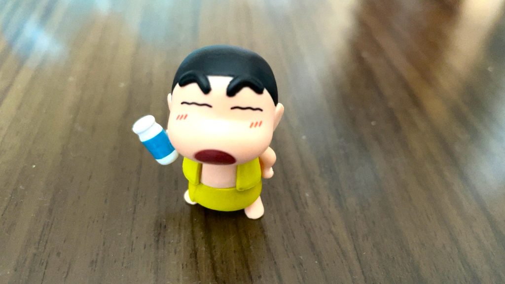 しんちゃんは5歳にしてはませているところがあるので、お風呂あがりに牛乳を飲んで気持ちよくなっている姿が自然に思えますね。